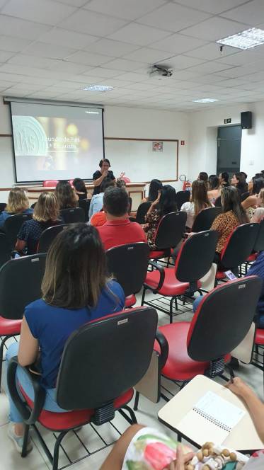 A equipe de Pastoral do CENSA reuniu-se na sexta-feira, 6/6, com os pais dos alunos que este ano receberão sua Primeira Eucaristia. O encontro teve à frente a diretora Ir Ana Teresa Pinto, a coordenadora de Pastoral Anna Luisa Ferreira e catequista Maria de Fatima Coelho, que refletiram sobre o papel dos responsáveis na construção da espiritualidade de seus filhos. "É importante que os pais assumam, junto à equipe de catequese, o papel de evangelizadores. Essa parceria é fundamental no processo das crianças", disse Anna Luisa.