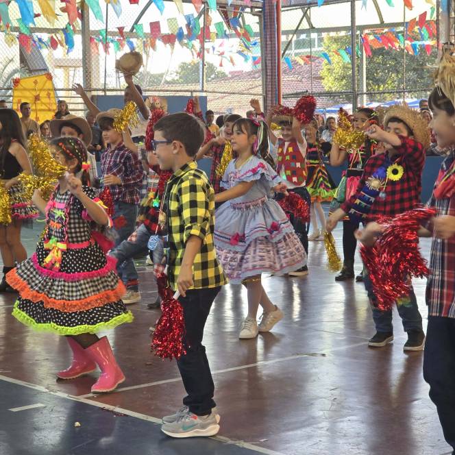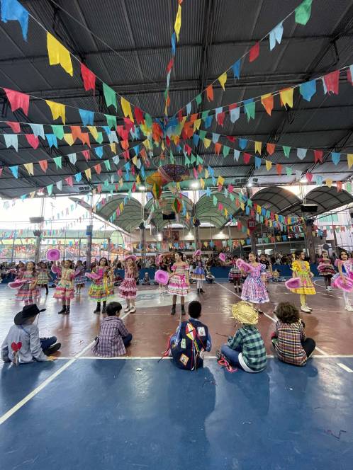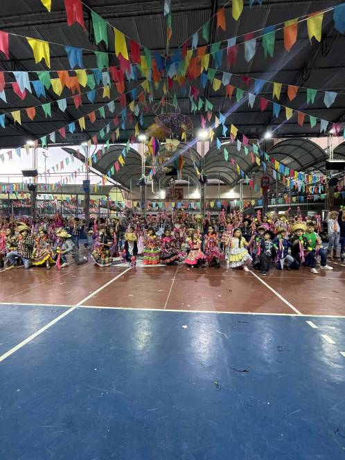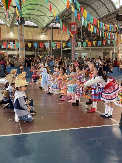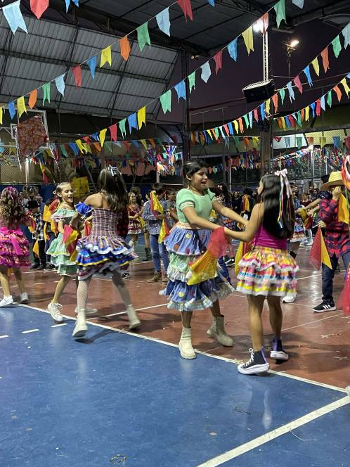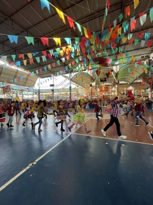 Foram 12 horas de alegria e diversão! Danças na quadra, pátio cheio, barracas animadas e delícias de montão!