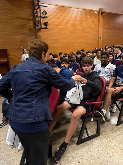 Muito treino e incentivo. Esse é o clima dos atletas do CENSA às vésperas dos Jogos Mazzarellos 2025. Na segunda-feira, 1º/9, os alunos se reuniram no auditório com a direção da escola para uma acolhida cheia de empolgação. Receberam um kit com camisa, mochila, garrafinha, bateco, balas, caneta e muita energia boa.