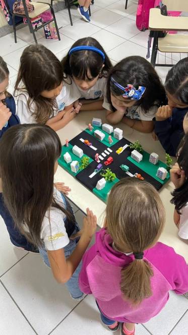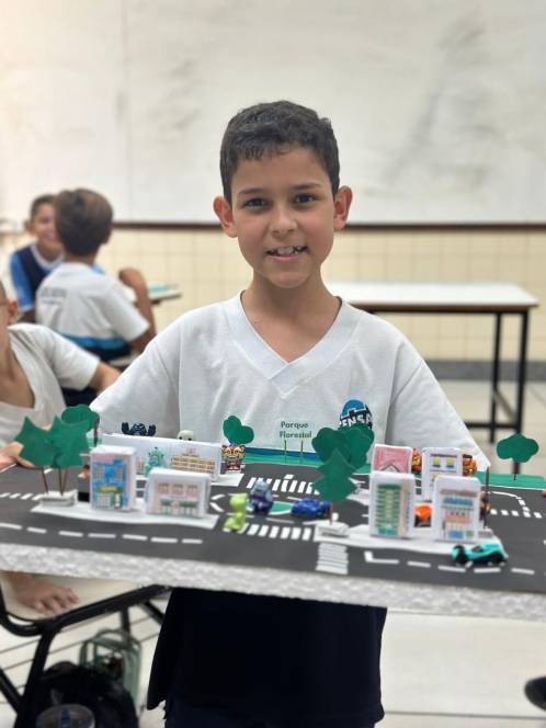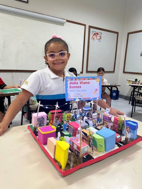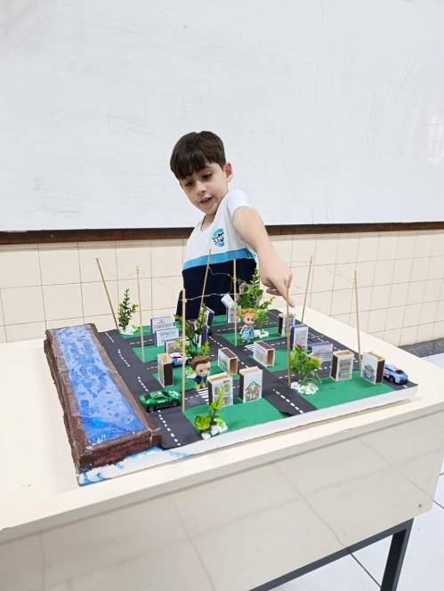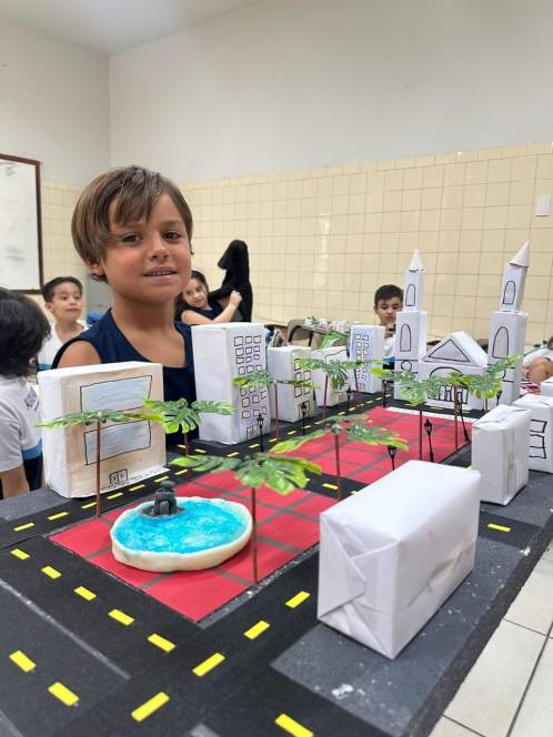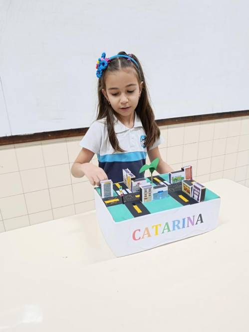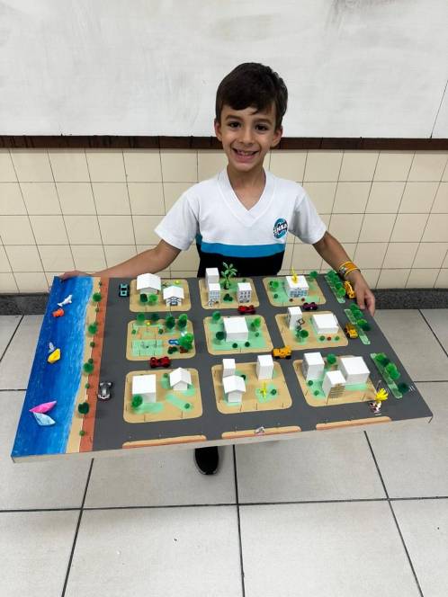 Desenvolvendo o tema "Bairro: lugar de vivência e convivência", nas aulas de Geografia, o 2º ano fundamental do CENSA amplia seu conhecimento explorando, também, os elementos que compõem as paisagens e a localização no bairro, como endereços e pontos de referência. Para colocar o aprendizado em prática, os alunos construíram maquetes representando o bairro, definindo ruas e quarteirões, identificando e explorando seus elementos característicos.