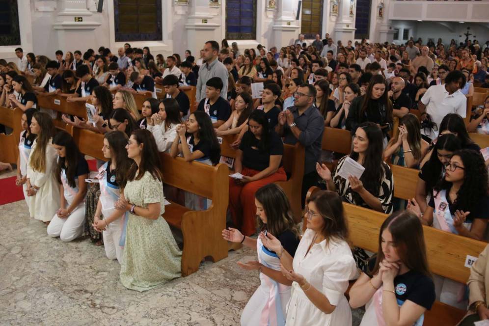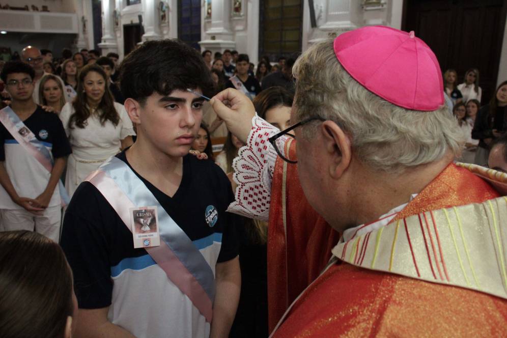 Na quinta-feira,30/10, 76 alunos do CENSA receberam o sacramento da Crisma, na capela da escola. A celebração do sacramento, que marca a confirmação e maturidade da fé cristã, foi testemunhado por padrinhos, familiares e amigos dos jovens que participaram desse momento de profunda espiritualidade e compromisso em serem testemunhas ativas da fé, na comunidade.