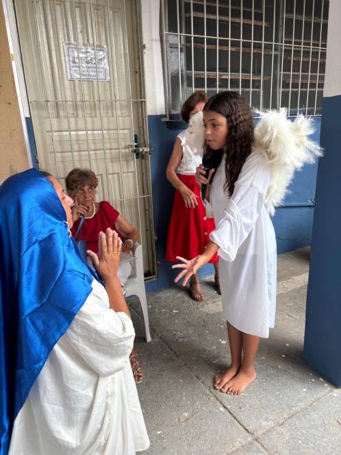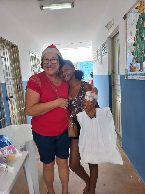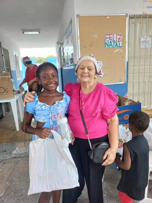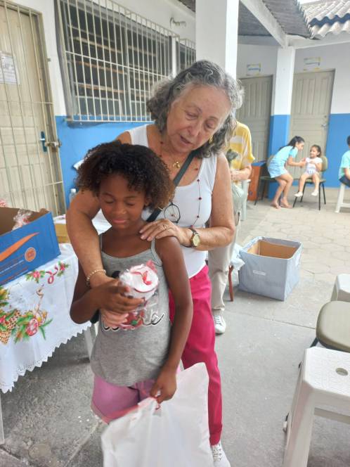Os projetos Dom Bosco e Estrela do Oriente, desenvolvidos pela UESC - União das Ex-alunas Salesianas Campistas concluíram as atividades de 2025 com a celebração do Natal. No sábado, 13/12, a festa foi para as 81 crianças das comunidades da Baleeira e Oriente. Orações, música, contação de histórias, brindes, um delicioso lanche e kits com roupas, sandália, brinquedos e uma lembrança especial, confeccionada pela ex-aluna Ediná fizeram a alegria da garotada. No domingo, foi a vez de celebrar com as 138 mulheres que participam do Projeto "Estrela do Oriente". Num encontro fraterno, partilharam momentos felizes com direito a lanche, presentes, encenação da Anunciação e distribuição de alimentos e frangos.