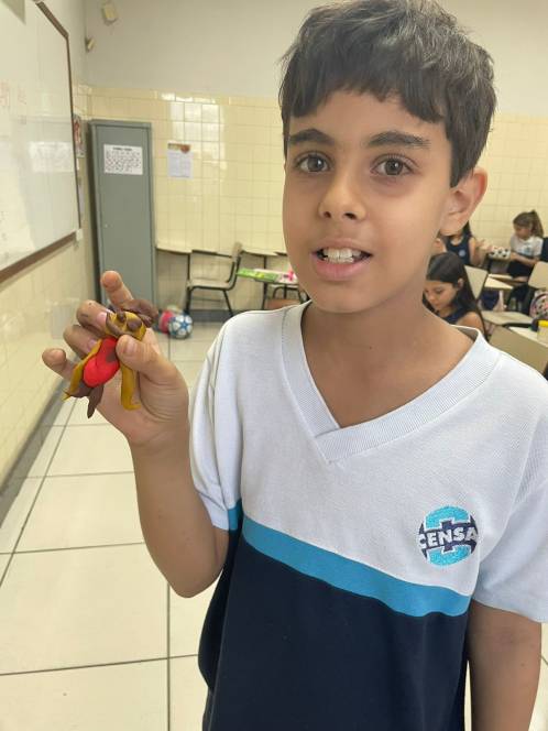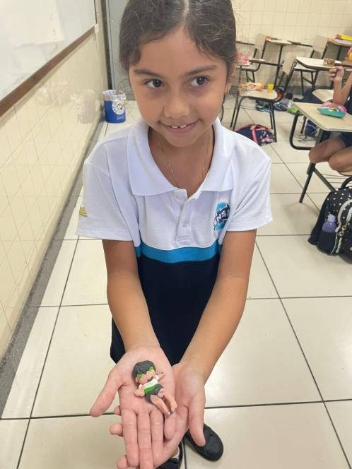 Inspirados no livro "A Casa Comum", de Humberto Herrera, o 4º ano fundamental participou de uma atividade unindo literatura, arte e consciência ambiental. Após refletirem sobre o cuidado com o planeta e os valores apresentados na obra, os estudantes foram convidados a imaginar e modelar, com massinhas, o seu próprio "Guardião da Casa Comum", com poderes especiais responsáveis por proteger a natureza, os oceanos, os animais e todos os seres vivos. Colocando a criatividade para fora, os alunos construíram figuras únicas, cheias de cores e significados. Ao final, apresentaram seus guardiões para os colegas, explicando sua missão e seus poderes. "A prática foi um momento de expressão artística e também de conscientização sobre o papel de cada um na preservação do nosso planeta, reforçando a mensagem de que todos nós podemos ser guardiões da Casa Comum.", explicou a coordenadora Shayanne Ferreira.