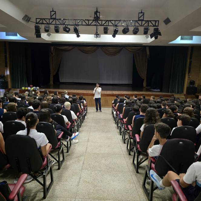 O CENSA recebeu o escritor Humberto Herrera, na quarta-feira, 9/4. Pedagogo chileno com formação em filosofia, pedagogia, teologia e ciências da religião, o convidado é reconhecido por sua atuação como professor e autor de livros didáticos e membro do grupo de pesquisa Movimento, Sabedoria, Ideias e Comunhão (MOSAICO), que se dedica a valorizar a identidade da América Latina. Humberto falou aos alunos do fundamental I e II, sobre sua obra "A Casa Comum: do umbigo ao coração", uma adaptação ficcional para o universo infantil das principais ideias ecológicas da encíclica Laudato si', do Papa Francisco, adotado pelos dois segmentos da escola. Nela, o protagonista Pedro reflete sobre a relação entre o ser humano e a natureza a partir de conversas com sua professora, sua pediatra, a vó Sebastiana, o tio José e até mesmo em sonhos. A história conduz os leitores à compreensão de que tudo está interligado - natureza e vida urbana, seres humanos e animais - e que todos habitamos uma mesma casa: o planeta Terra.
