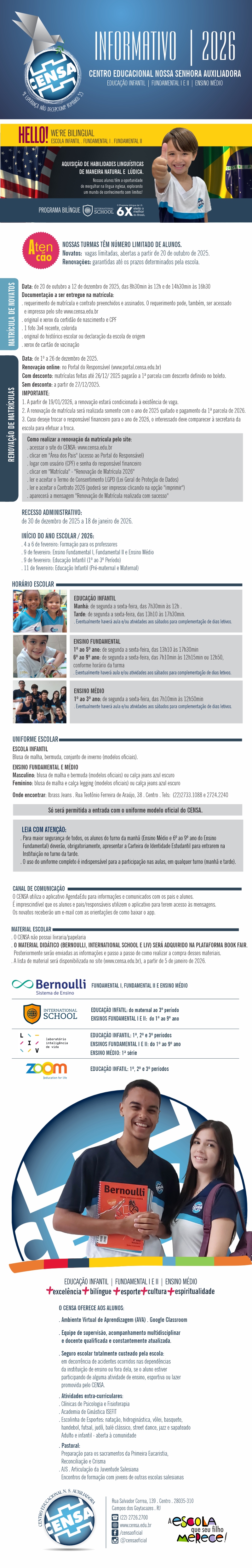 Vencendo mais uma etapa para a conquista de uma vaga na universidade, o terceirão do CENSA enfrentou o ENEM, nos dois primeiros fins de semana de novembro. Este ano, a Coordenação e Orientação Educacional do Ensino Médio uniu-se à Pastoral para inovar no pré-ENEM. Nas sextas-feiras que antecederam as provas, a galera participou de um encontro de pura alegria e descontração. O aulão foi de Educação Física, artes, oração, mensagens de incentivo, brindes, assinatura nos uniformes, banho de piscina e sessão de cinema com pipoca. "Acreditamos que nossos alunos estão preparados para as provas e investimos numa proposta de descontração, para que eles reduzam a tensão do momento", disse Anna Luiza Ferreira, coordenadora da Pastoral.