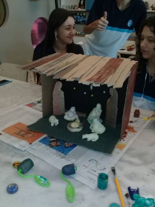 Em um ano marcado pelo incentivo à cultura maker, o CENSA fez questão de construir seu próprio presépio. Desenvolvido pelos alunos do Fundamental II e Ensino Médio, o projeto resultou numa linda mensagem de Natal, instalado na entrada da capela. Inspirados nas obras de Vik Muniz, os alunos utilizaram jornal, cola, tinta e muito afeto.