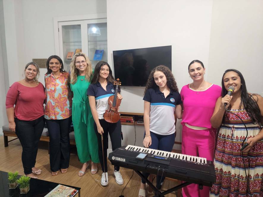 As alunas Elisa Albudane e Valentina Monteiro encantaram com o som do violino e teclado, enquanto eram distribuídas flores às funcionárias, professoras, coordenadoras e irmãs. Viva as mulheres! A vocês, todo nosso respeito e admiração!