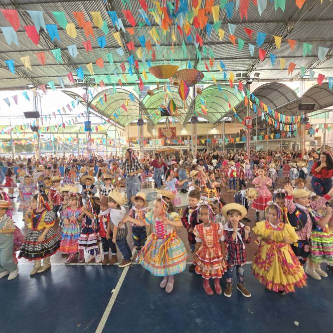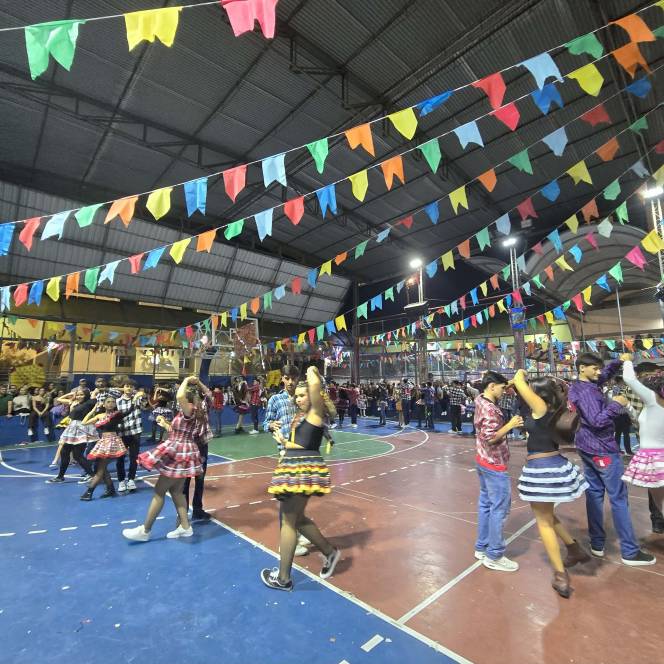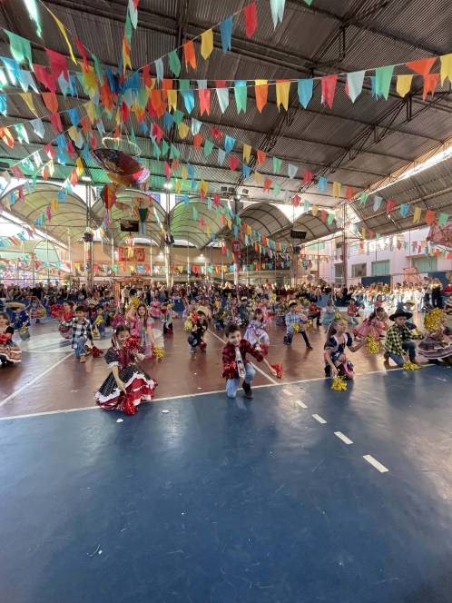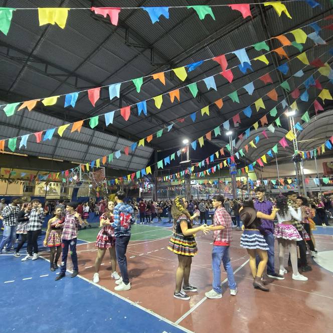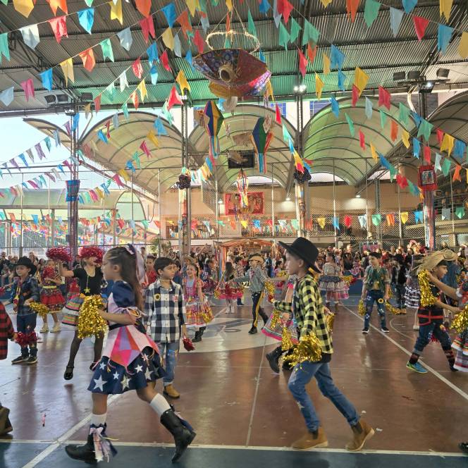 Foram 12 horas de alegria e diversão! Danças na quadra, pátio cheio, barracas animadas e delícias de montão!