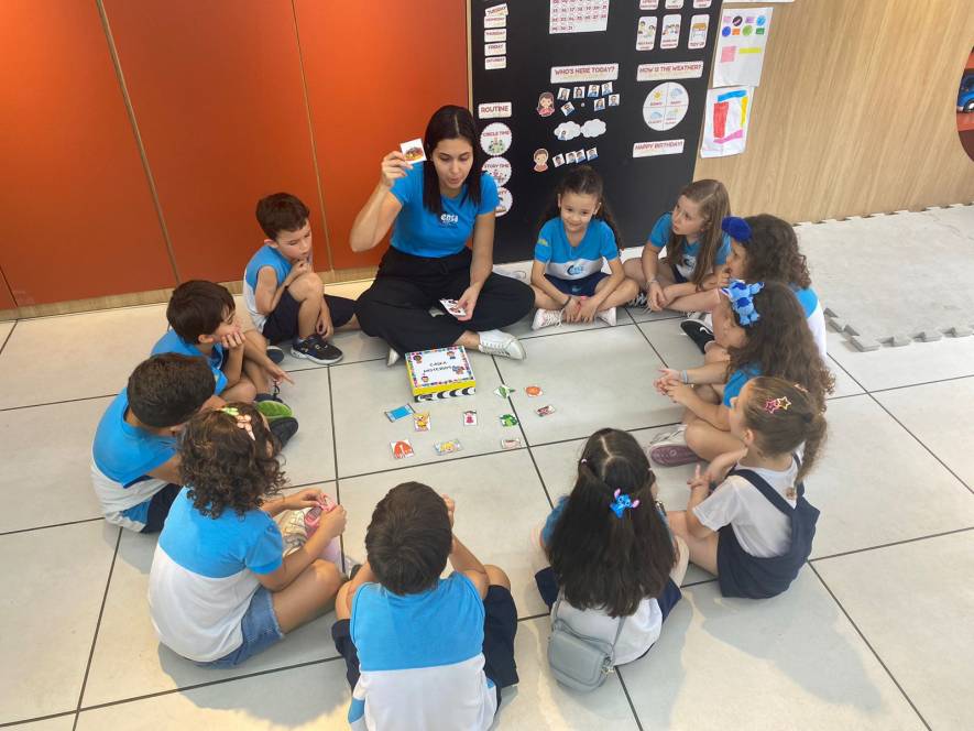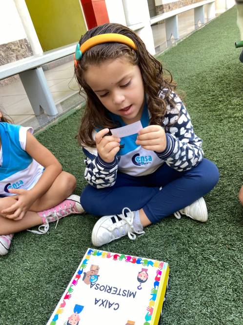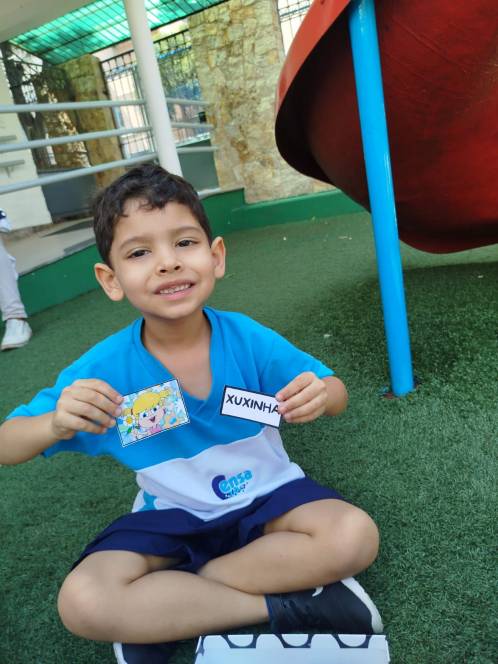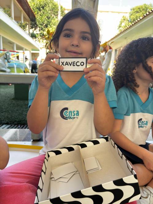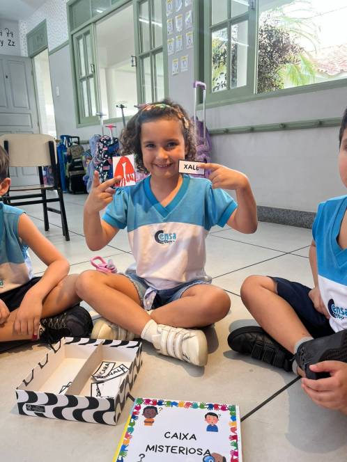 "X do Movimento" foi a atividade do 3º período da Escola Infantil, na terça-feira, 16/9. A proposta uniu ludicidade e construção do conhecimento, associando movimento corporal à leitura de palavras. Durante a dinâmica, cada vez que a criança lia uma palavra iniciada pela letra X, ela deveria realizar um movimento previamente combinado como, por exemplo, levantar os braços. Essa associação entre linguagem e ação corporal promoveu um aprendizado significativo, pois integrou aspectos cognitivos, motores e sociais em uma única experiência.