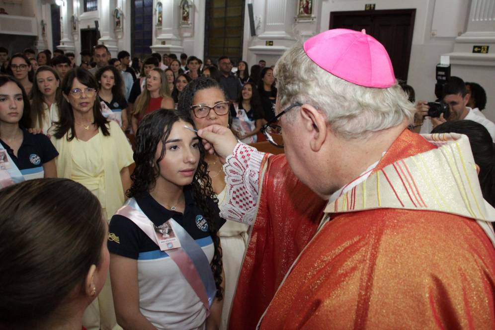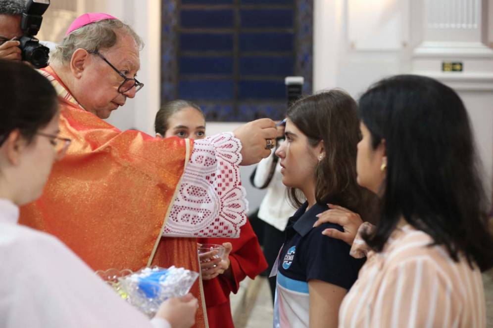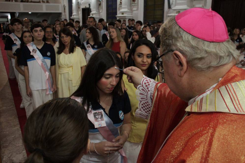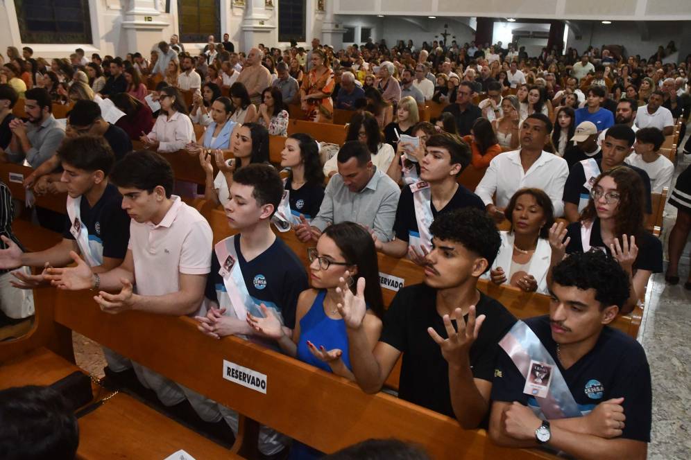Na quinta-feira,30/10, 76 alunos do CENSA receberam o sacramento da Crisma, na capela da escola. A celebração do sacramento, que marca a confirmação e maturidade da fé cristã, foi testemunhado por padrinhos, familiares e amigos dos jovens que participaram desse momento de profunda espiritualidade e compromisso em serem testemunhas ativas da fé, na comunidade.