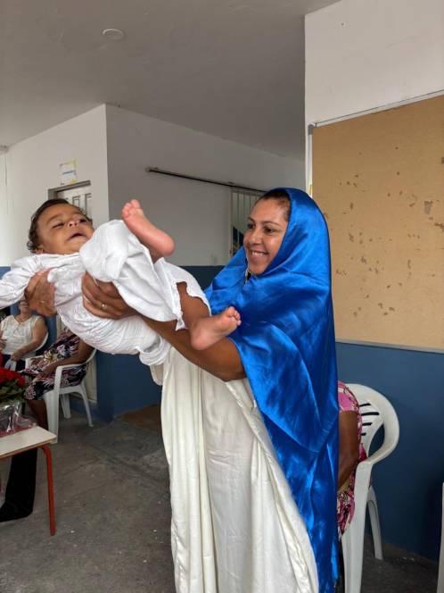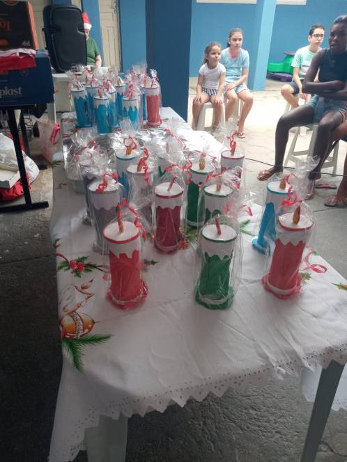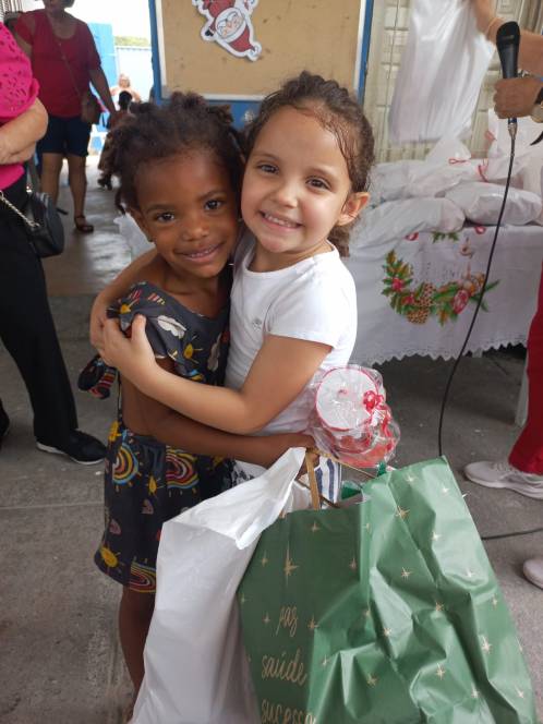 Os projetos Dom Bosco e Estrela do Oriente, desenvolvidos pela UESC - União das Ex-alunas Salesianas Campistas concluíram as atividades de 2025 com a celebração do Natal. No sábado, 13/12, a festa foi para as 81 crianças das comunidades da Baleeira e Oriente. Orações, música, contação de histórias, brindes, um delicioso lanche e kits com roupas, sandália, brinquedos e uma lembrança especial, confeccionada pela ex-aluna Ediná fizeram a alegria da garotada. No domingo, foi a vez de celebrar com as 138 mulheres que participam do Projeto "Estrela do Oriente". Num encontro fraterno, partilharam momentos felizes com direito a lanche, presentes, encenação da Anunciação e distribuição de alimentos e frangos.