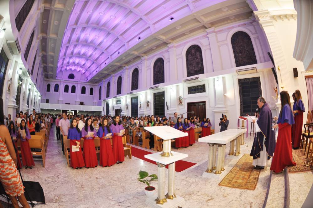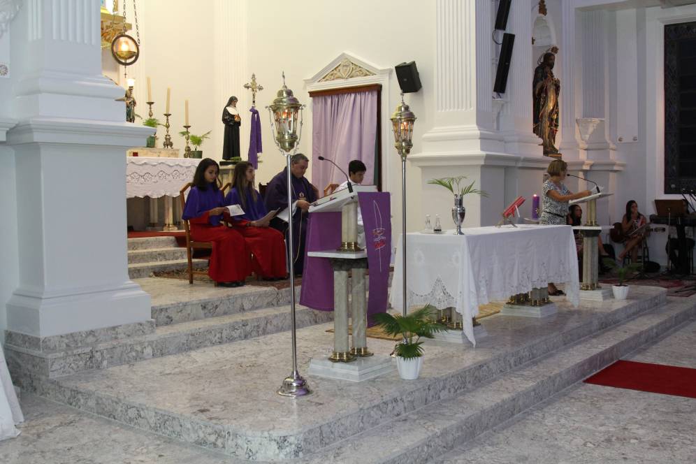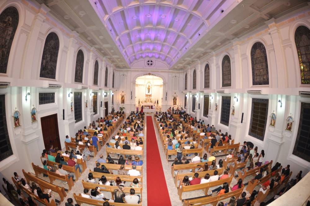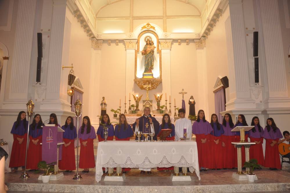 Celebrada por Pe. Murialdo Gasparet, a missa foi precedida da entronização da Cruz e contou com a presença de pais, amigos, funcionários. Totalmente reformada, a Capela recebeu um sistema de som digital de última geração, iluminação especial que oferece 700 opções de cores de luzes no teto, portas anti-pânico e restauração das imagens, além de piso de granito e nova pintura.