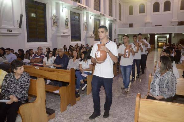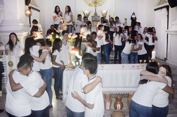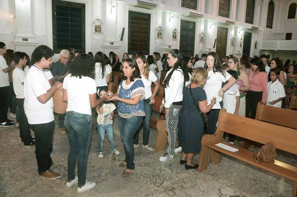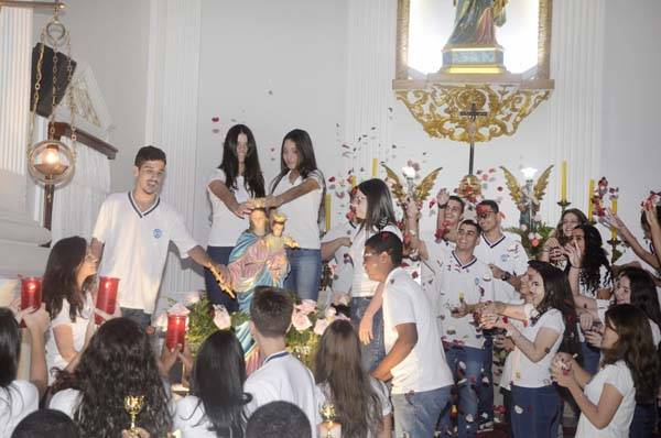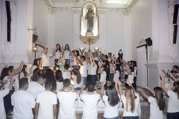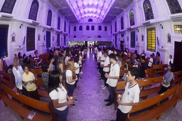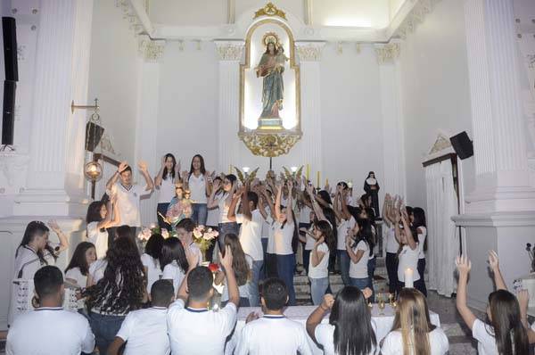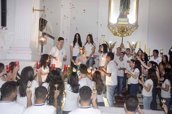 Festejando a alegria de dar alegrias, os 1º e 2º anos do Ensino Médio do CENSA ficaram à frente do quarto dia da Novena de Maria, coroando Nossa Senhora com muito fervor.