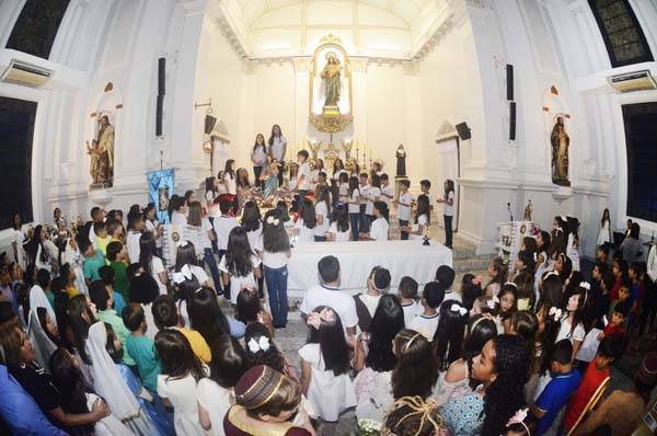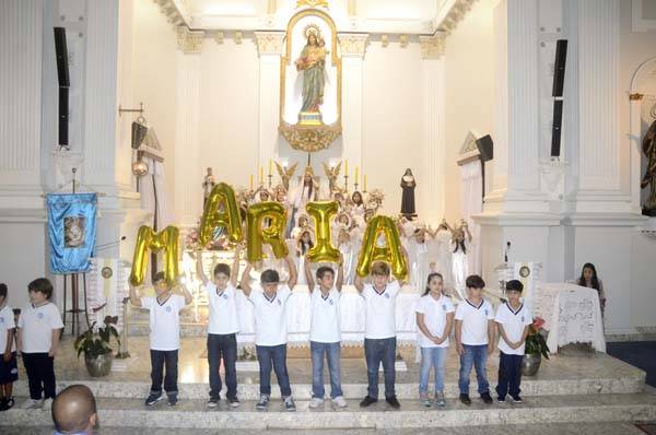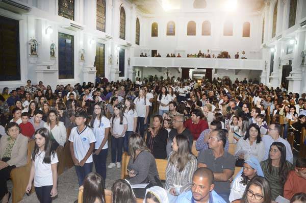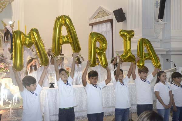 Fechando a Novena de Maria, o Ensino Fundamental II, do 2º ao 5º ano, homenageou a Nossa Mãe, sempre Auxiliadora, numa noite de muita devoção e fé.