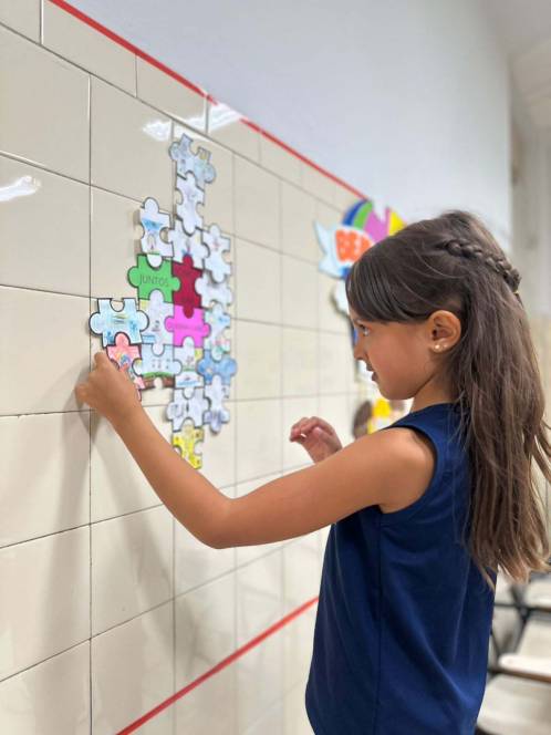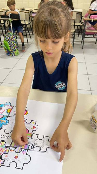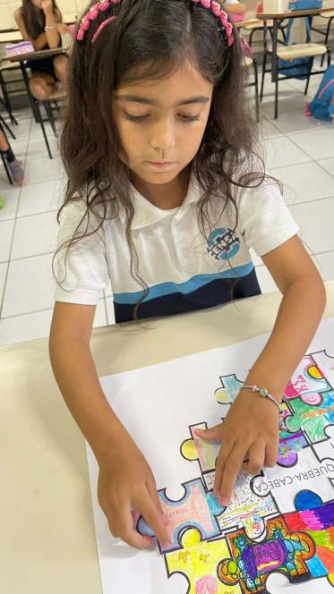 O 2º ano fundamental do CENSA realizou uma dinâmica focada no pertencimento, na valorização de cada um para a formação de um todo. Numa peça de quebra-cabeça, cada aluno escreveu seu nome e ilustrou-a com elementos que o representasse. Em seguida, montaram juntos o quebra-cabeça, refletindo a importância individual e a união dos membros para que o grupo esteja completo. "Cada peça é única, essencial e fundamental. Juntos somos mais fortes!", explicou Shayane Ferreira, coordenadora do segmento.