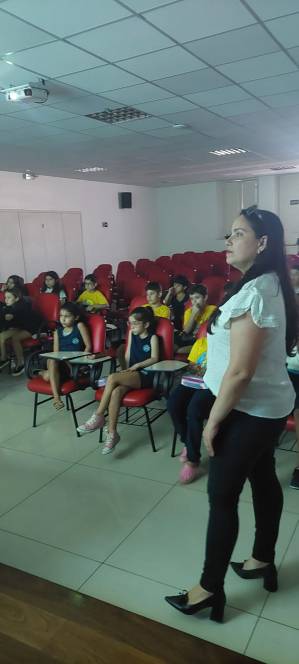 A turma 304, do Fundamental I do CENSA, recebeu a bióloga Isis Vivório para uma palestra na quarta-feira, 04/10. Conscientizando sobre os impactos causados pelos plásticos nos oceanos, a convidada ilustrou a problemática com vídeos e slides, atentando para os impactos na cadeia alimentar dos que dependem do oceano para sua subsistência, incluindo os seres humanos.