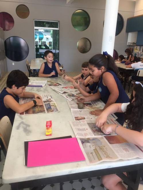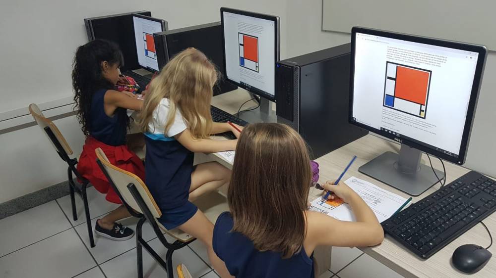 O  3º ano utilizou a metodologia ativa, conhecida como Laboratório Rotacional, a fim de explorar as figuras geométricas planas observadas em nosso cotidiano. No Laboratório de Informática, os alunos pesquisaram e conheceram a biografia de Malba Hahan e do artista Mondrian, analisando suas obras, que unem Matemática e Arte. Em um segundo momento, no Espaço Maker, produziram suas próprias obras, utilizando os mais variados materiais. O terceiro espaço utilizado foi a quadra de esportes. Em geoplanos, representaram formas geométricas diversas, apreciando a utilização das mesmas em nosso dia a dia. Para finalizar, sentiram como é "saboroso" o conhecimento matemático, degustando um "chocolate geométrico".
