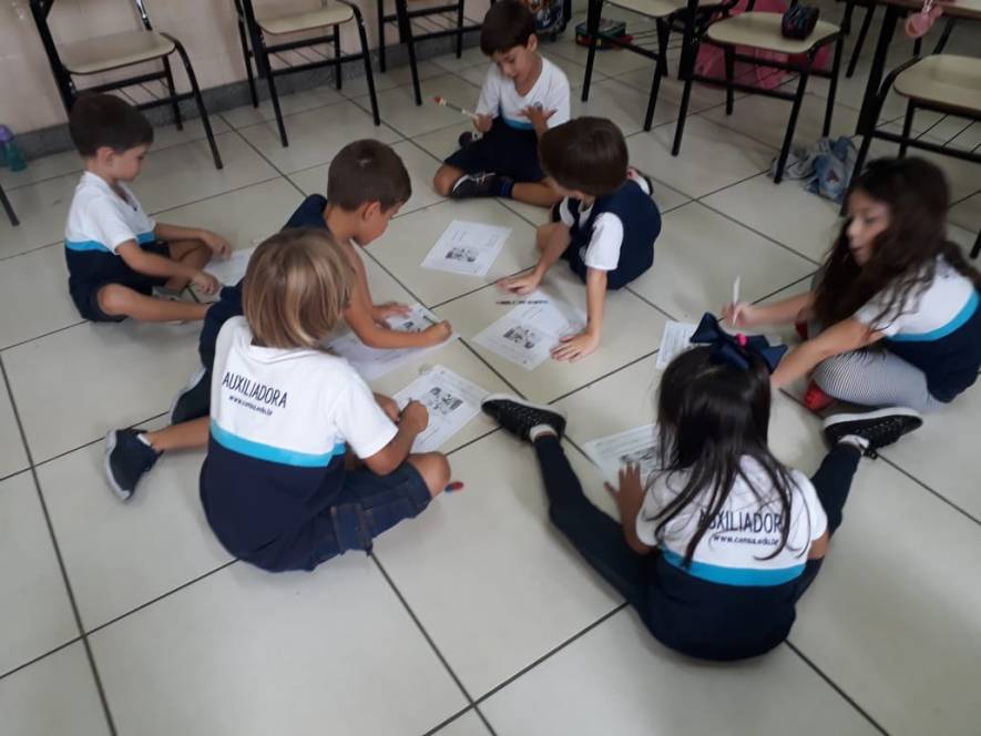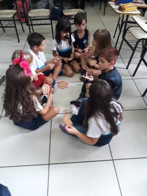 O 1º ano trabalhou, nas aulas de Matemática, desafios baseados na história da Branca de Neve, apresentada no primeiro momento. A dinâmica aconteceu a partir de "estações de aprendizagem" propondo atividades diferentes sobre o mesmo conto infantil, dentre elas uma digital, um enigma matemático e um  jogo de dominó adaptado.