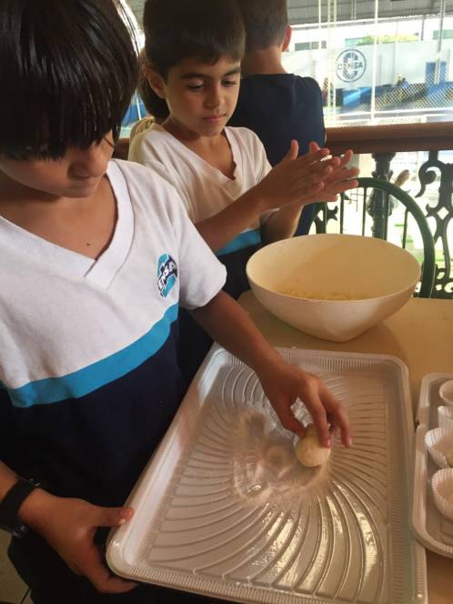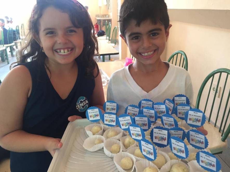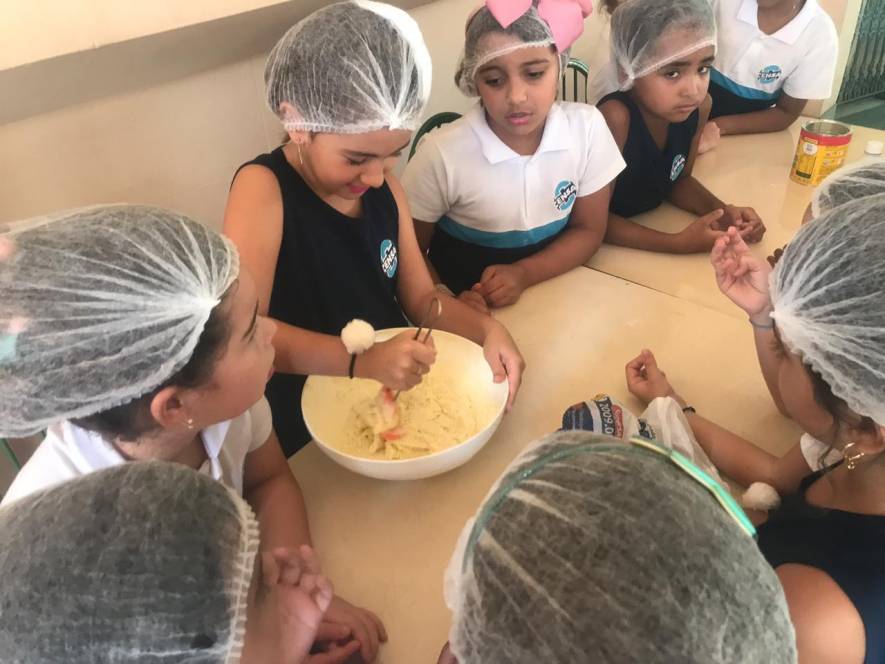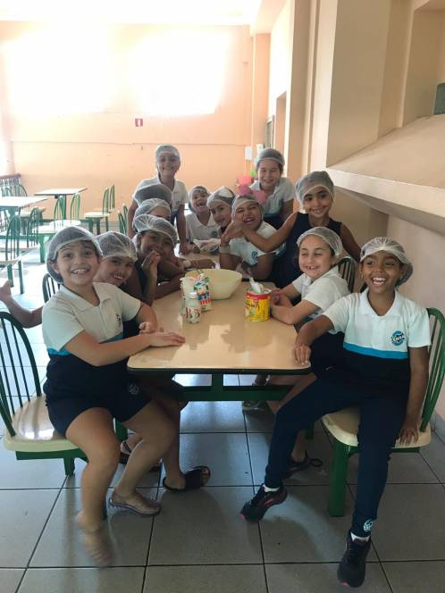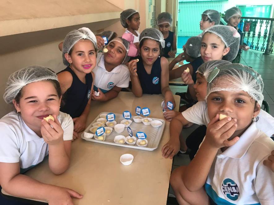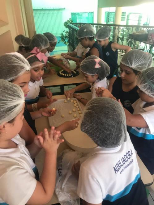 O 2º ano desenvolveu o tema "A Matemática vai à cozinha". Os alunos pesquisaram o modo de preparo dos "Docinhos de Leite em pó", selecionaram os ingredientes e prepararam a receita. Em seguida, resolveram desafios a partir dos docinhos produzidos, envolvendo as operações de adição e subtração, os conceitos e dúzia, meia dúzia, dezena e meia dezena. Por fim, trabalharam o conceito de proporcionalidade para prever os ingredientes necessários para o preparo de mais de uma receita de doce.