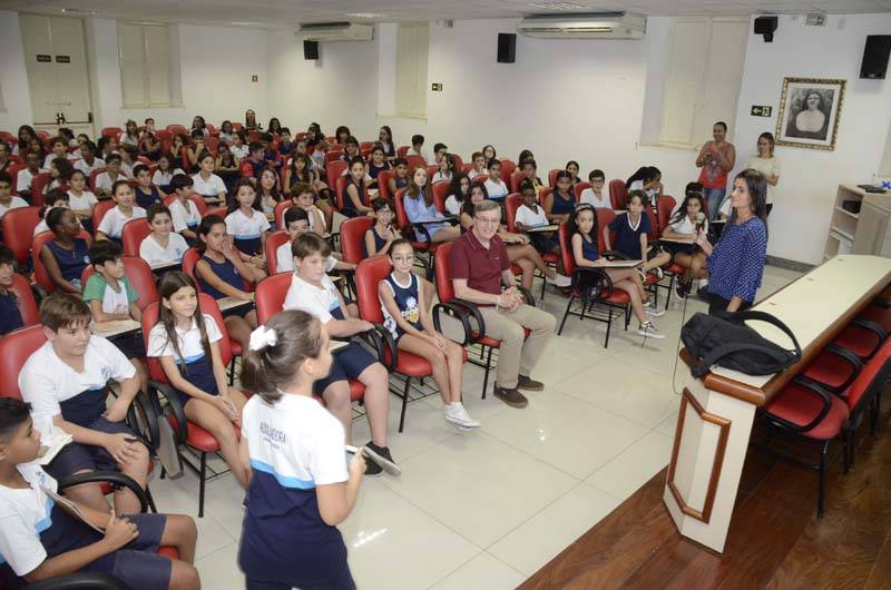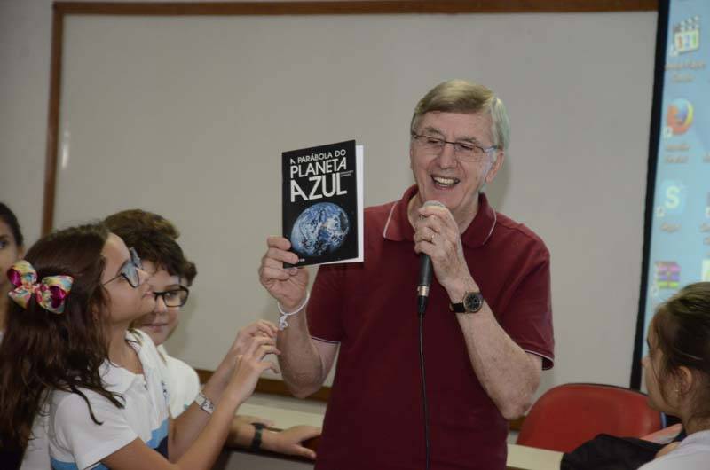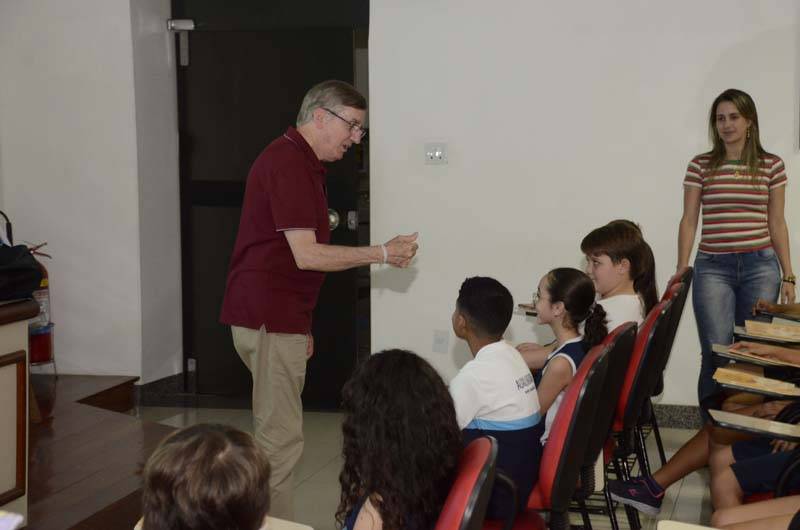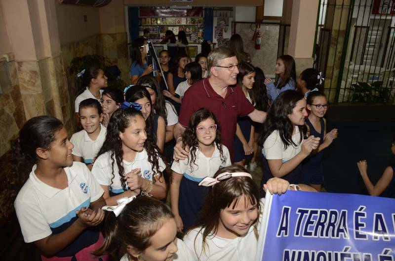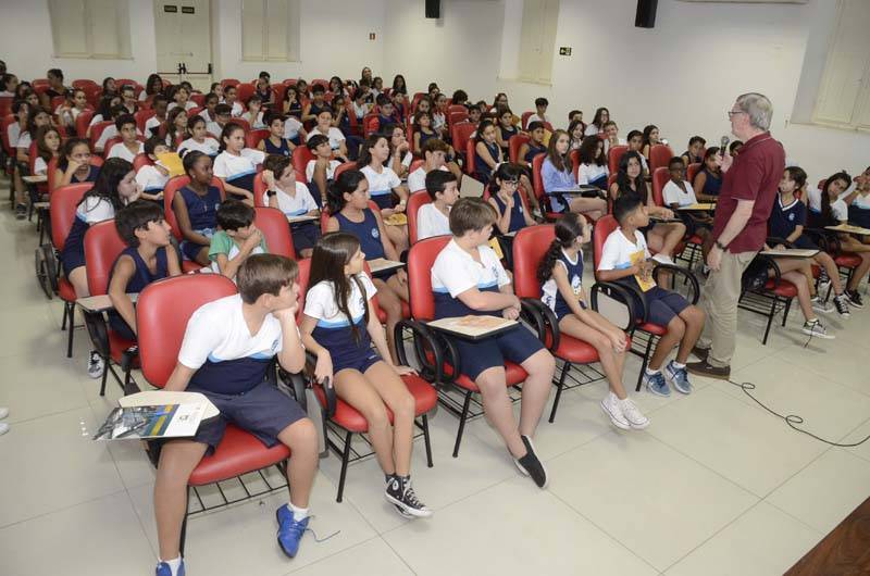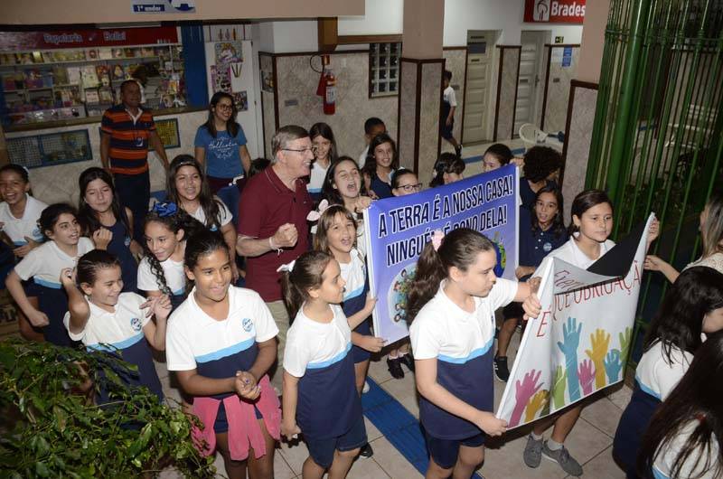 O Fundamental I e II receberam o escritor Fernando Carraro na quarta-feira, 22 de maio. O encontro foi uma oportunidade de discutir as obras "Carta à prefeita" e "Somos parte da mudança" , estudados pelos alunos. Mostrando grande interação com a proposta dos livros, que reflete sobre a responsabilidade de cada um nas mudanças do nosso planeta-casa, a garotada preparou faixas, cantou e fez uma passeata divulgando a mensagem. Encantado, o autor prontamente aderiu ao movimento, participando com os alunos, na certeza de ter deixado uma boa semente no coração de cada um.