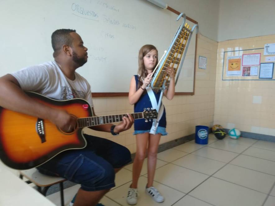 Os alunos do 2º ao 5º ano fundamental do CENSA foram apresentados à Lira de 25 teclas, na aula de Música, do dia 28 de maio. Responsável pela disciplina, Prof. Douglas Motta fez questão de ensinar questões básicas sobre esse instrumento não tão popular entre os jovens. Depois das explicações, um pouco de música agradou em cheio a garotada.