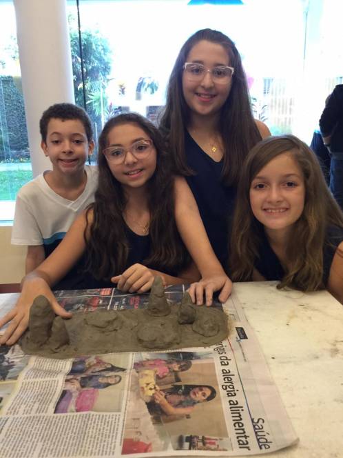 A aula de Geografia de 29 de maio, do 4º ano fundamental do CENSA, foi além de paradigmas e buscou uma ampliação social. Após um debate sobre a diversidade brasileira, os alunos chegaram ao questionamento: "Todos nós aprendemos igual?" A resposta foi "Não, pois temos nossas singularidades!". E daí surgiram novas reflexões sobre as diferenças que atingem o próprio aprendizado. "Como um deficiente visual aprende?", "Como podemos auxiliá-lo numa aula de Geografia?" A sugestão veio da própria turma: criar elementos geográficos necessários para facilitar o aprendizado sobre conceitos importantes da disciplina. Partindo para a prática, os alunos criaram relevos brasileiros de argila,para servirem de instrumento didático.
