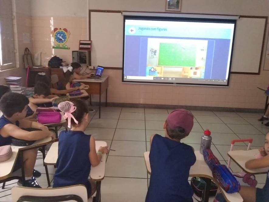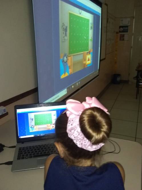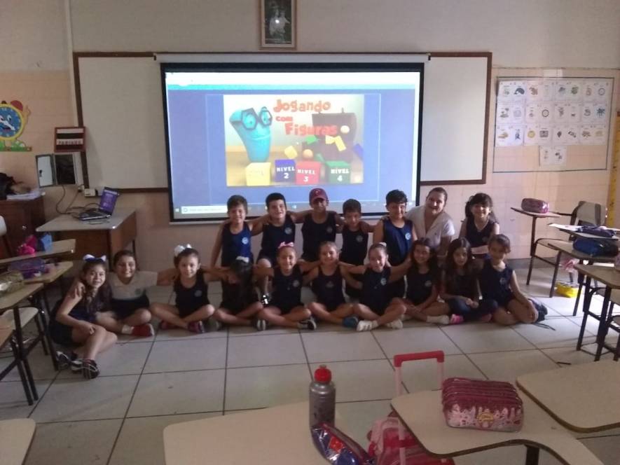 O 1º ano Fundamental do CENSA participou de um momento de games, no dia 1º de julho,  para introduzir o conteúdo do novo livro de Matemática, "Figuras geométricas e espaciais". Partindo do site www.smartkids.com.br, a criançada selecionou o jogo que utiliza vários cenários, como parque de diversões e cômodos residenciais, para identificar as forma geométricas. No primeiro momento, a atividade foi realizada individualmente, através do laptop, enquanto o restante da turma acompanhava pela lousa digital, ajudando e mediando o colega para a conquista do objetivo proposto.