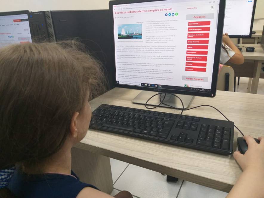 Estudando "Do movimento intenso à geração de energia elétrica", o 2º ano fundamental do CENSA partiu para o Laboratório de Informática em busca de informação. Na segunda-feira, 1º de julho, os alunos pesquisaram sobre os problemas relacionados ao tema no Brasil e no mundo tendo em mente que "a inovação é sempre inspirada por outras realidades, mas é construída no interior de um trabalho feito por nós, entre nós, com os nossos recursos". Diante disso, os alunos perceberam as falhas no abastecimento de energia e debateram estratégias para solucionar o problema.