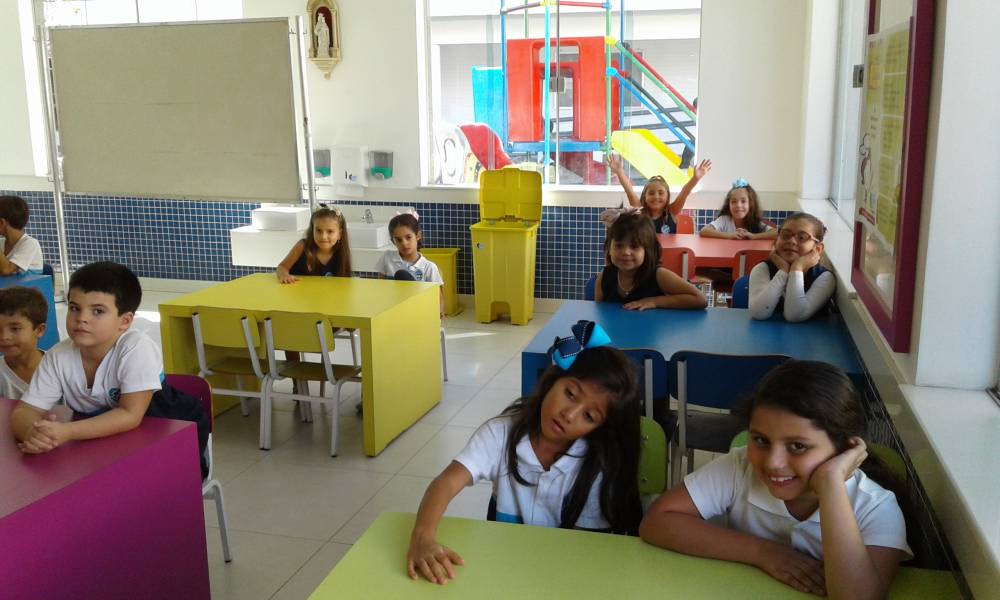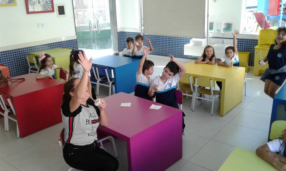 O 1º ano fundamental do CENSA fechou o semestre letivo da disciplina de Inglês no dia 12 de julho. Com a temática "This is where I live", os alunos descreveram suas casas, os ambientes, os objetos e móveis mais importantes, através de atividades práticas como o LEGO e o livro paradidático. Explorando a "kitchen", a criançada prepararou a "peanut butter", a típica pasta de amendoim americana, que posteriormente foi degustada num delicioso sanduíche.