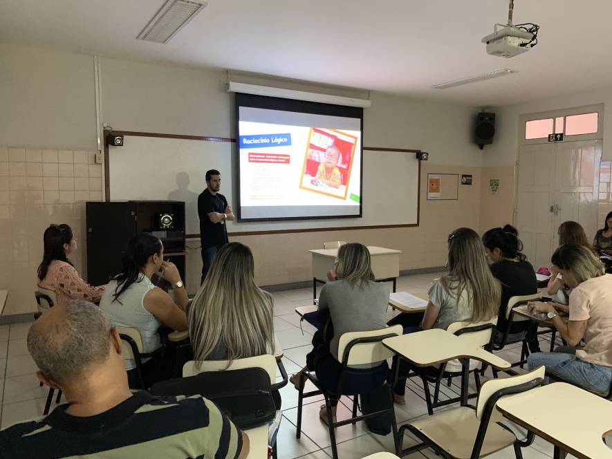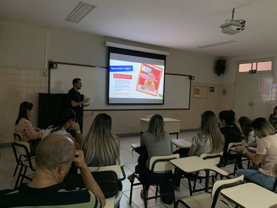 O corpo docente do Ensino Fundamental I do CENSA contou com a colaboração do gerente de produtos do CENSANET, Pedro Vieira, para aprofundar seu conhecimento sobre informática e robótica. Na sexta-feira, 2 de agosto, Pedro apresentou os materiais e programas à equipe que se prepara para introduzir a "Alfabetização em Robótica" para os alunos, nesse semestre.
