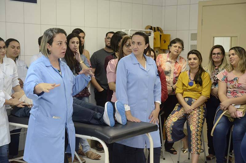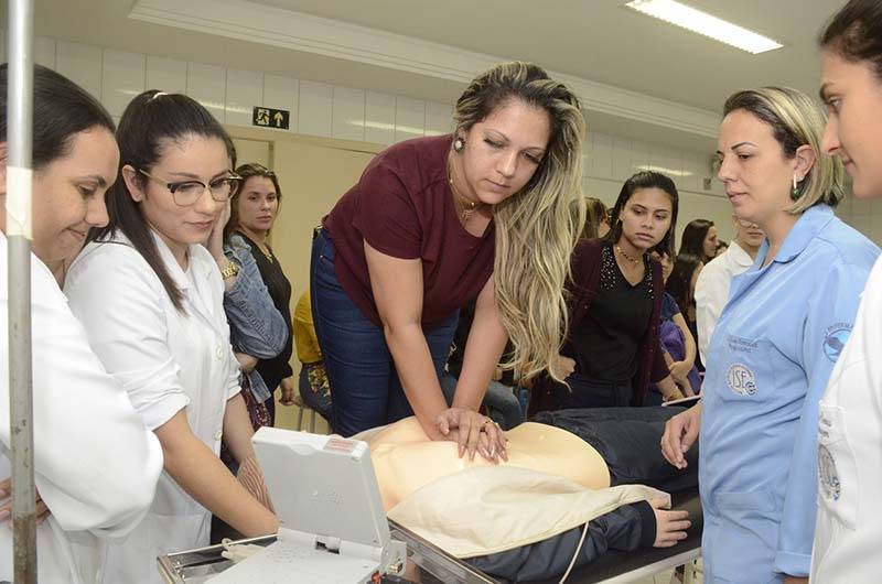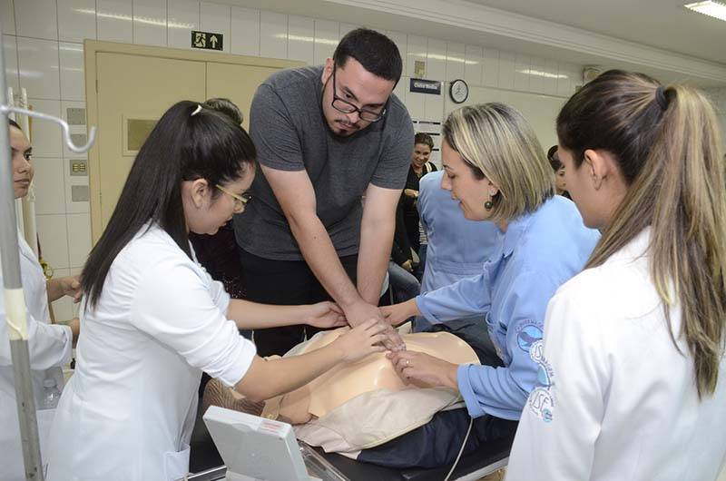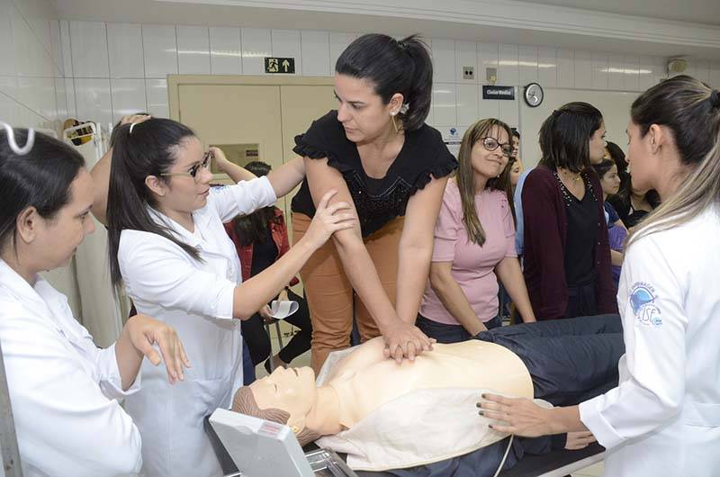 Os professores receberam material didático e, após a exposição teórica, realizaram exaustivamente as práticas no Laboratório de Práticas Clínicas e Semiologia do ISECENSA.