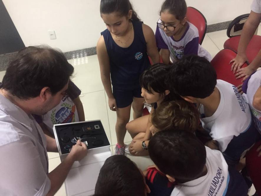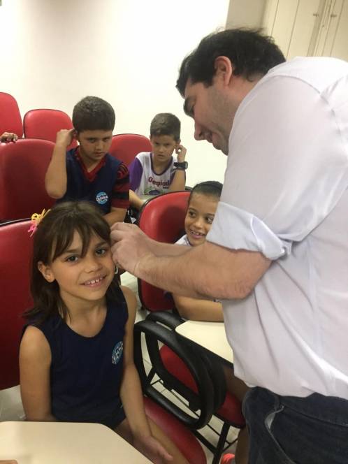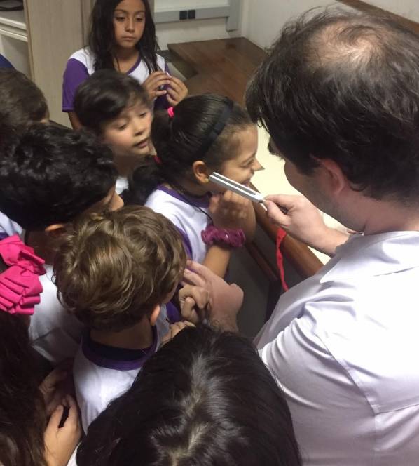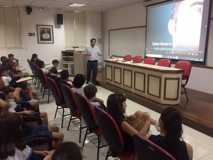 Estudando as diferentes formas de comunicação, o 2º ano fundamental do CENSA recebeu a visita do otorrinolaringologista Dr. Rafael Torno, para explicar como funciona o sistema auditivo e suas conexões com o corpo. No encontro, que aconteceu na tarde de 17 de setembro, os alunos identificaram as partes do ouvido, reconheceram a necessidade de alguns dispositivos para os deficientes auditivos e, ainda, conheceram alguns aparelhos disponíveis para essa função.