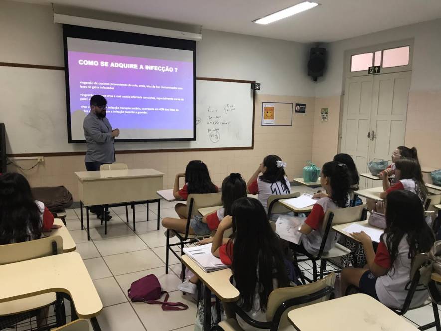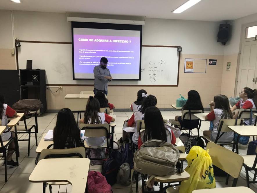 Desenvolvendo o projeto "Sensibilização sobre a Toxoplasmose em Campos dos Goytacazes", 4º ano fundamental do CENSA recebeu o médico pediatra Raphael Barros Maia, para uma palestra, no dia 24 de setembro. O objetivo foi esclarecer dúvidas e conhecer as formas de contágio e sintomas da doença. Cientes de que a falta de tratamento da água é o principal fator dos altos níveis da doença na cidade, os alunos apresentaram suas ideias de prevenção ao palestrante, propondo uma solução para o problema.