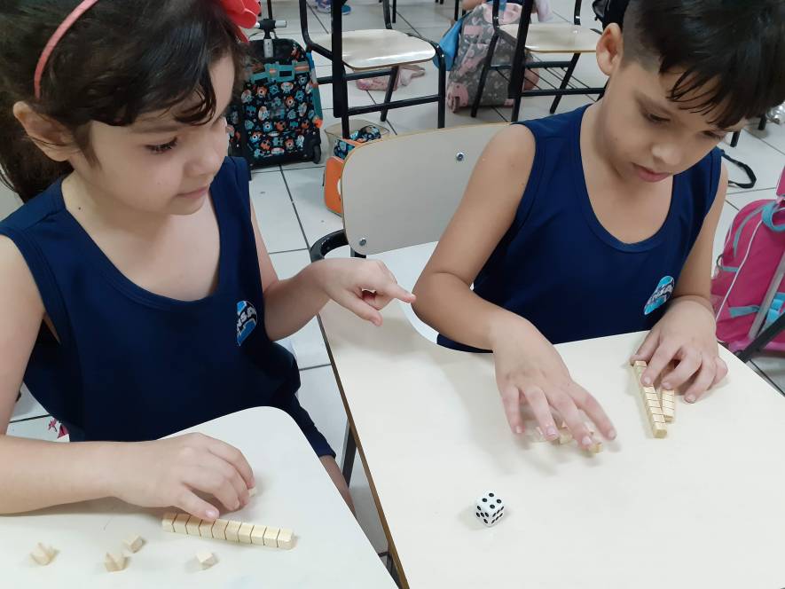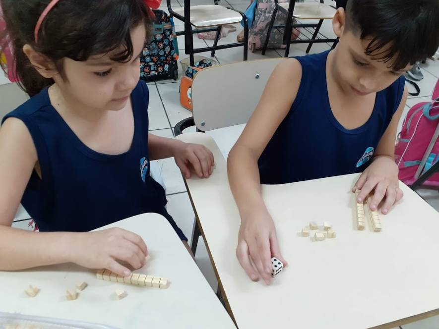 O 1º ano fundamental do CENSA está aprendendo o conceito de dezenas e unidades com o material dourado. Feito de madeira e dividido em peças representando a unidade, a dezena, a centena e o milhar, o material foi criado pela educadora Maria Montessori e permite um aprendizado concreto e lúdico.