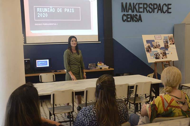 A equipe do Ensino Fundamental I do CENSA reuniu-se com os pais nos dias 4, 5 e 6 de março para apresentar a proposta pedagógica de 2020. No primeiro dia, além de esclarecerem dúvidas e terem acesso ao manual do aluno com toda a organização do ano letivo, os responsáveis pelos alunos foram apresentados à Plataforma Bernoulli de Gamificação. A grande novidade ficou para os dois dias seguintes.. A reunião aconteceu no Espaço Maker da escola, onde os pais foram convidados a vivenciarem uma aula prática, participando do Desafio da Torre de Marshmallow.
