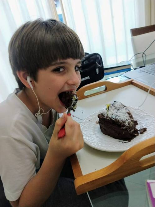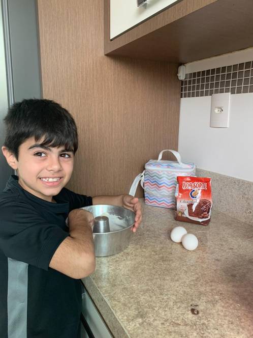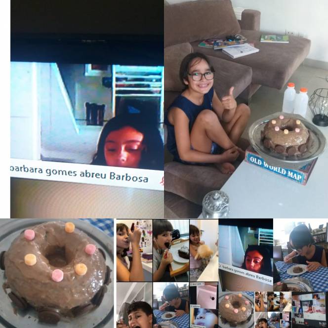 Será que tem Matemática na culinária? Aproveitando o dia do aniversário de uma colega, o 3º ano fundamental do CENSA quis responder essa pergunta de maneira lúdica. Numa comemoração virtual, cada aluno recebeu um kit com ingredientes e preparou uma receita de bolo. Aproveitando o contexto, analisaram a quantidade dos ingredientes e estabeleceram relações de proporcionalidade, fundamentando o conceito de duplo, triplo, quádruplo e quíntuplo.