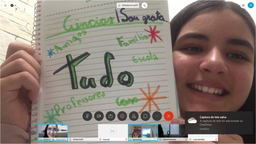 Diante das incertezas do momento atual, a disciplina de Religião promoveu um momento de reflexão para os 4º e 5º anos. A dinâmica iniciou com um vídeo motivador, onde a proposta era seguir em frente, se reerguer e trocar o "se" por ação. A seguir, os alunos foram convidados a um "exercício de gratidão", repensando seus dias, suas dificuldades mas pontuando o que tinham a agradecer. Apresentando seus sentimentos, fizeram orações pessoais e representaram sua gratidão em mensagens e frases.