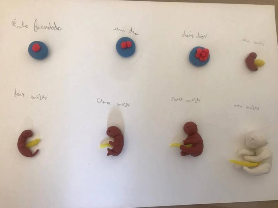 "Surgimos grandes no mundo?" Esse foi o questionamento levantado pelo 5º ano fundamental do CENSA, durante as aulas de Ciências. A resposta veio em forma de atividade maker. Após o estudo do desenvolvimento humano em apostila e vídeo , a criançada representou seu próprio desenvolvimento embrionário, desde as primeiras semanas da gestação até a formação completa das estruturas. Foram utilizados massa de modelar, barbante e desenhos.