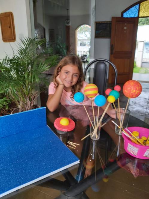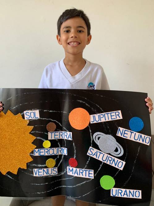 Estudando Astronomia, o 3º ano fundamental do CENSA confeccionou um sistema solar, em casa. A atividade aconteceu na quarta-feira, 11 de novembro, despertanDo a criatividade dos alunos. "Esse tema instiga as crianças e aguça sua curiosidade", disse a professora Patrícia.