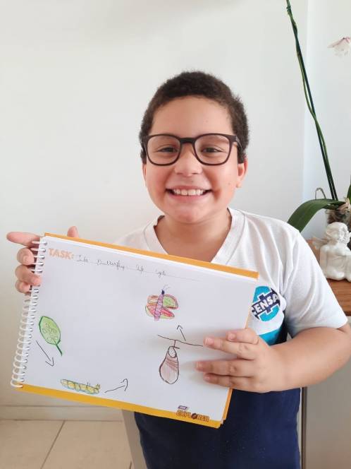 Atuando com uma abordagem CLIL, que fomenta a integração entre idioma e conteúdos diversos, o Programa Bilíngue promoveu a "Butterfly Life Cicle", nas últimas aulas de março, para o 2º ano fundamental do CENSA. O tema seguiu dos estudos de Ciências, onde exploram os seres vivos, possibilitando a incorporação das disciplinas. Os alunos aprenderam as fases do ciclo Eggs Caterpillar, Chrysallis e Adult Butterfly, e, posteriormente, fizeram lindos registros no Activities Book. "Teacher, que interessante! A caterpillar come a skin (pele)!", "Adorei ver que a butterfly fortalece as wings (asas) para depois voar!" foram alguns comentários dos alunos.