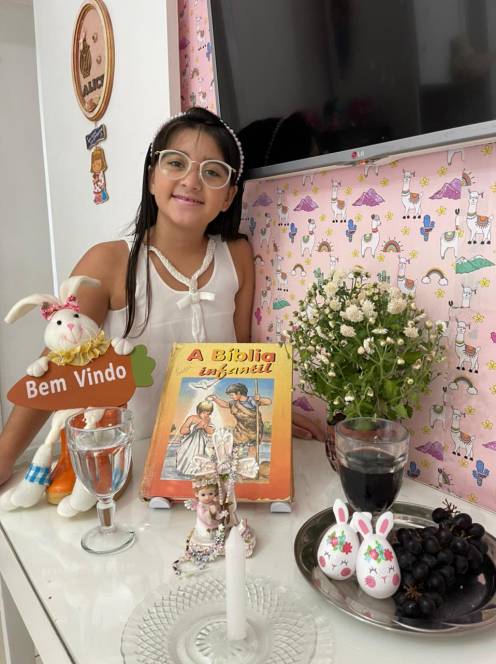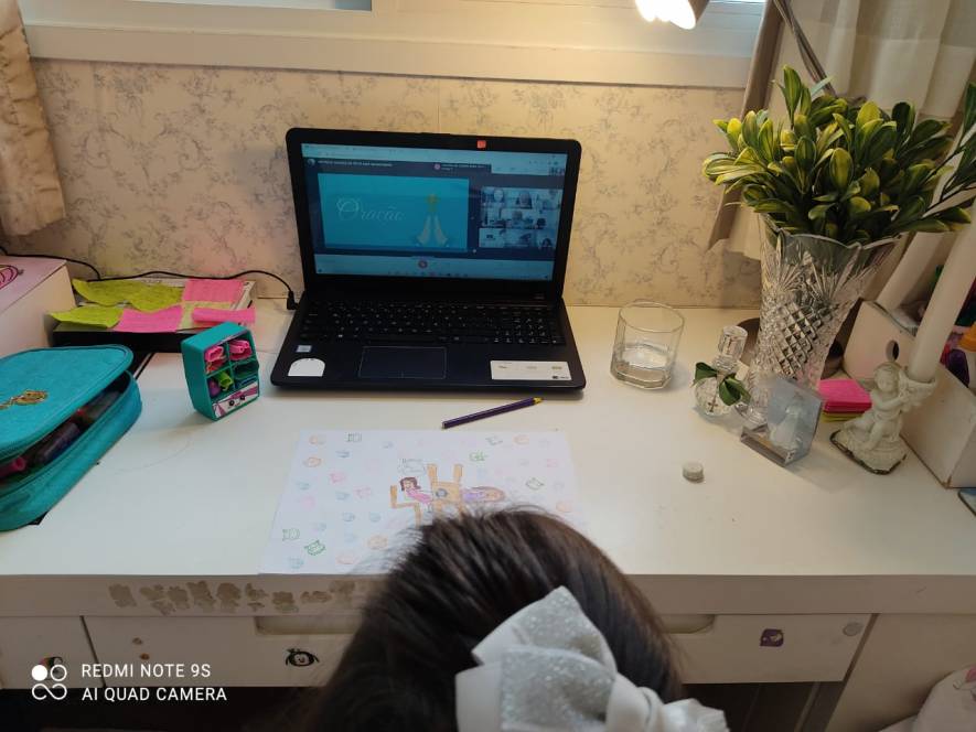 O grande dia, a Páscoa, foi comemorada na quinta-feira, 8 de abril. Junto aos familiares, as crianças organizaram um ambiente de oração para celebrar a data e, acolhidos pela coordenadora pedagógica Criscilamara das Neves, pela diretora da escola, Ir. Rosa Idália Pesca, e da diretora acadêmica Ir. Luzia Carvalho, rezaram pedindo a bênção para suas famílias, para o país e para o mundo. " O momento foi oportuno para refletir sobre a fé, em tempos tão difíceis. Jesus ressuscitado é a nossa esperança de dias melhores", disse Criscilamara.