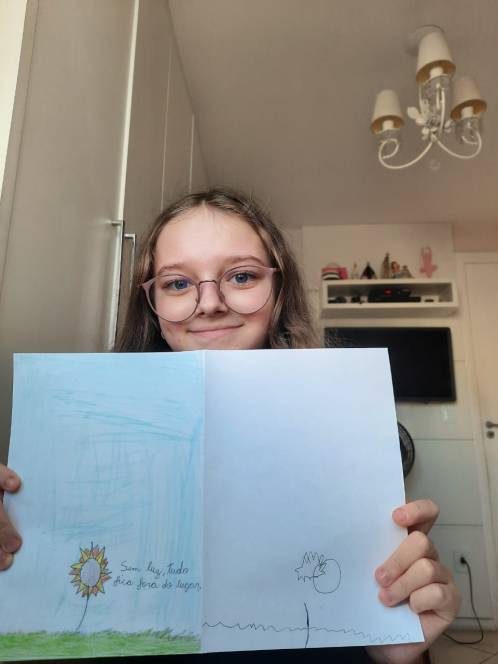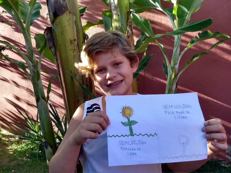 Após uma semana de reflexão sobre a missão e vocação das Irmãs Salesianas, o 5º ano fundamental do CENSA participou de uma dinâmica em preparação para a Festa da Gratidão. "Sem luz, tudo fica fora do lugar" propôs desenhar um girassol, de olhos fechados, seguindo apenas as instruções da professora. "Percebendo a falta de interação entre os traços e vendo que o desenho não foi o imaginado, os alunos associaram o tema à importância das Irmãs do CENSA e de Beth Landim, nossa vice-diretora, na nossa escola, como mulheres luz", explicou Criscilamara das Neves, coordenadora do segmento. Redesenhando, de olhos abertos, a garotada pôde ver, de forma concreta, a diferença entre os resultados. "Representar um girassol simboliza a nossa busca pela luz, indo ao encontro de pessoas que nos ajudam a crescer e nos enchem de vida", afirmou a professora Letícia Manhães, responsável pela atividade.