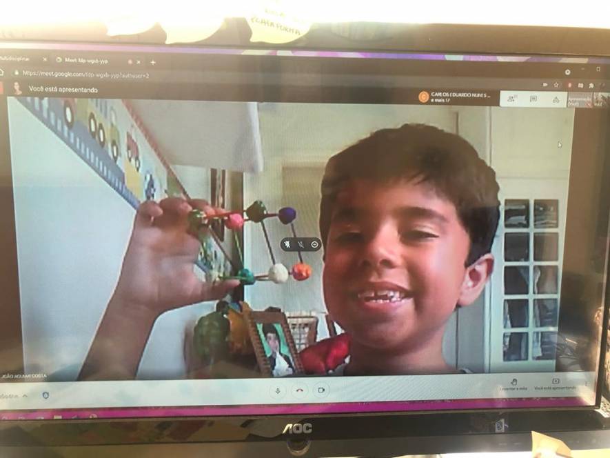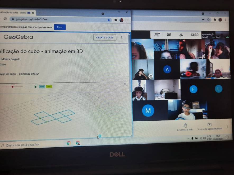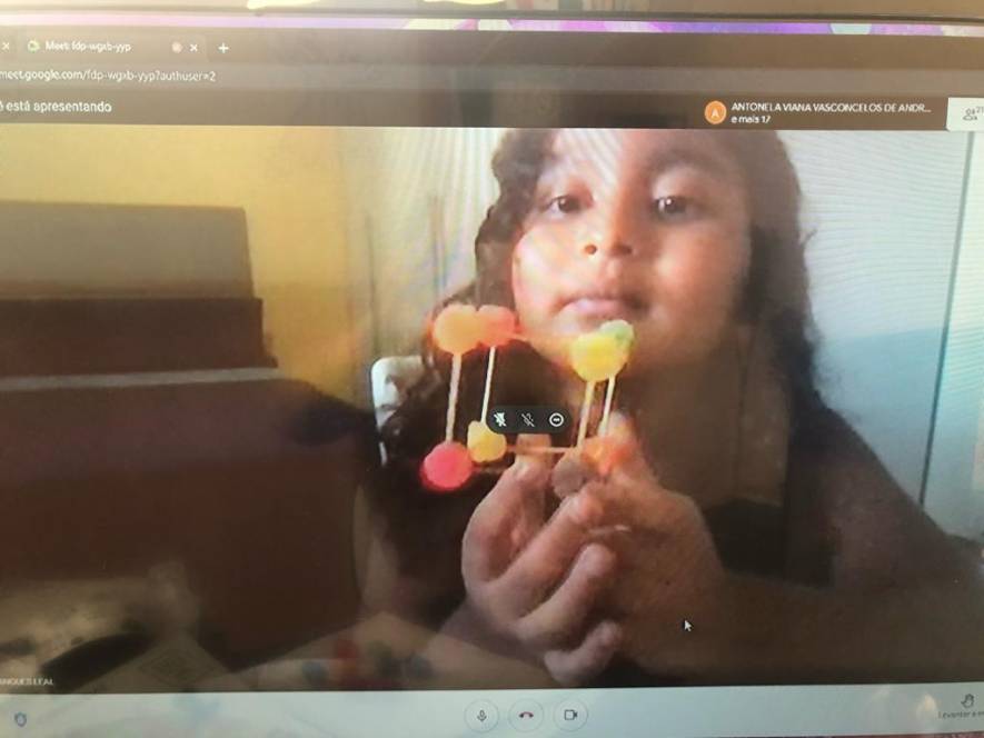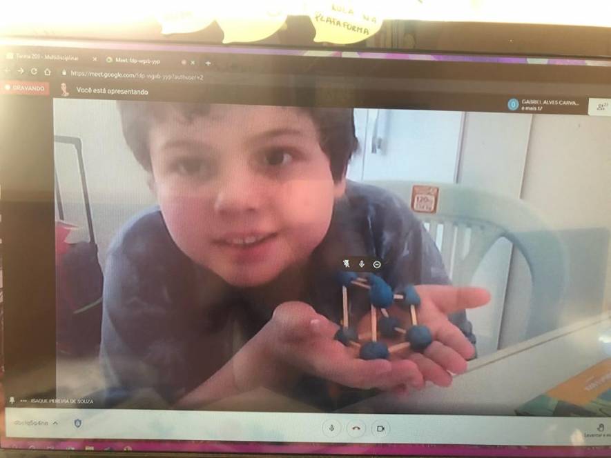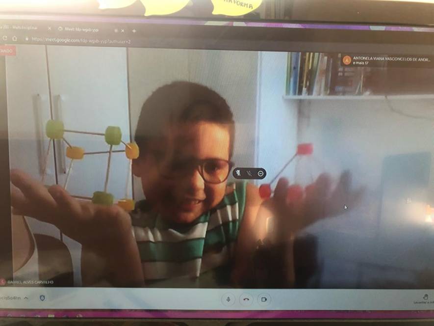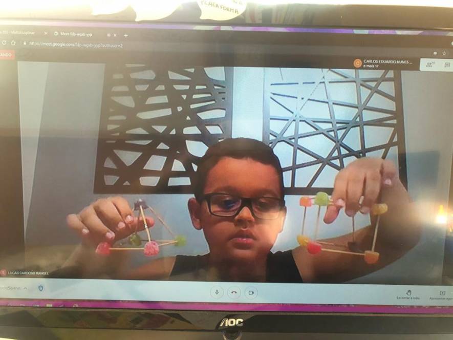 Trabalhando a geometria espacial, o 2º ano foi desafiado a realizar uma atividade lúdica utilizando palitos, jujuba e massinha de modelar. O objetivo era ampliar a visão espacial dos sólidos geométricos, habilidade já explorada, anteriormente, com a utilização do aplicativo Quivervision e do software Geogebra. A professora Fabiana Alves destaca “que os alunos ficaram encantados com as visualizações e participaram com muito entusiasmo”.