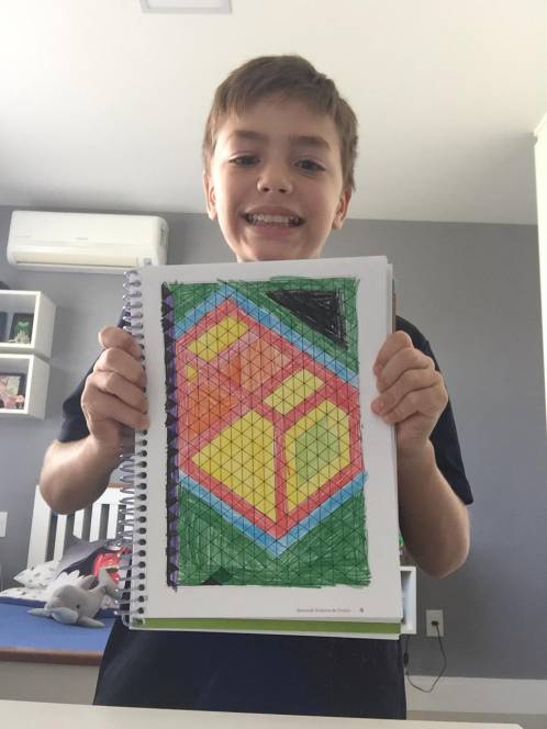 Para o 5º ano, a proposta foi a criação de obras, através da técnica do mosaico. "Além de aumentar a concentração, a execução da atividade estimula a criatividade, uma vez que é possível criar inúmeros desenhos, explorando padrões entre formas e cores", explicou a professora Letícia Manhães.