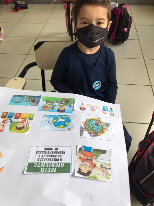 Aderindo ao Pacto Educativo Global, o 2º ano fundamental do CENSA criaram cartazes divulgando a proposta, na tarde de 1º de setembro. A atividade envolveu as disciplinas de Matemática e Ciências e teve início em casa, onde os alunos pesquisaram imagens relacionadas à preservação do meio ambiente. Em sala de aula, organizaram-nas em linhas e colunas, analisando a disposição e estabelecendo diferentes maneiras de cálculo. As produções individuais foram apresentadas aos colegas, trazendo mensagens de cuidado à casa comum, ressaltando a importância de "sermos agentes positivos de transformação".
