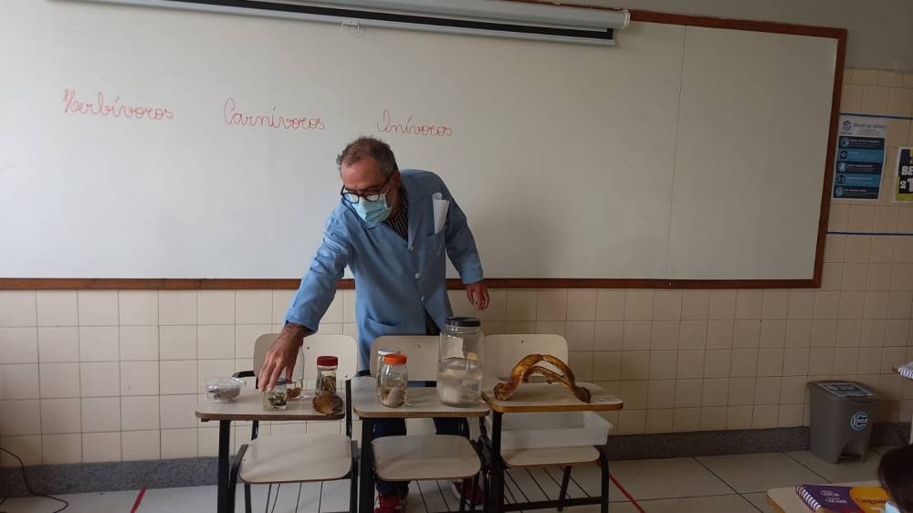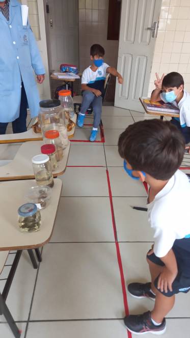 O 2º ano fundamental do CENSA contou com a participação super especial de Ricardo Pereira, na aula de Ciências, do dia 9 de setembro. Prendendo a atenção dos alunos, o técnico de laboratório da escola apresentou diversos animais, classificando-os em herbívoros, carnívoros e onívoros. Motivada, a criançada ainda descreveu as características de cada um, relacionando-os ao ambiente em que vivem.