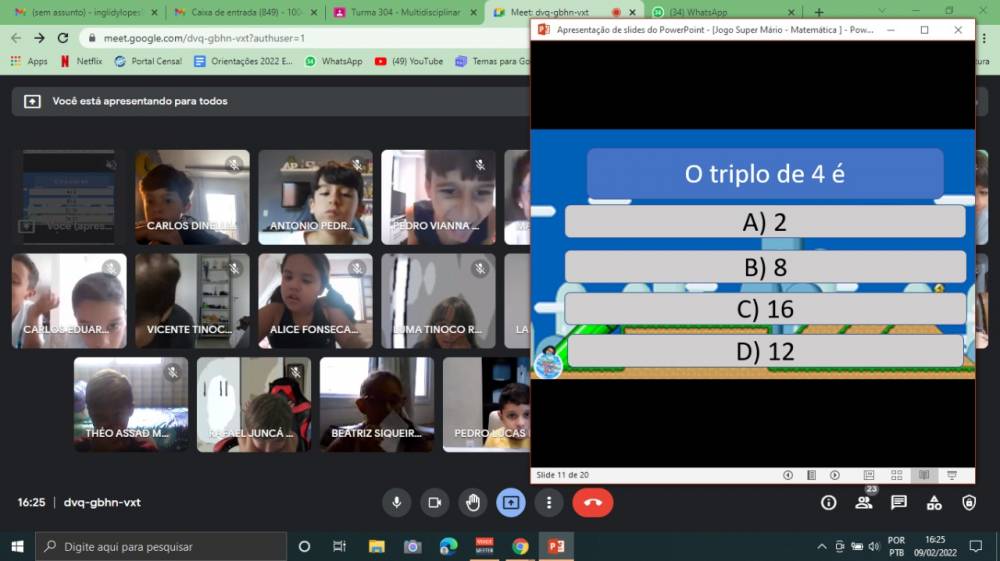 Quarta-feira, 9 de fevereiro, foi dia do 3º ano fundamental do CENSA relembrar os conceitos matemáticos. Utilizando o jogo "Trilha do Mário Bros", os alunos reviram antecessores, sucessores, multiplicação e adição. A prática permitiu que os alunos construíssem e utilizassem fatos básicos para o cálculo mental e escrito na matemática. "O lúdico na Matemática desperta o prazer em aprender", disse a professora Jackeline Freitas.