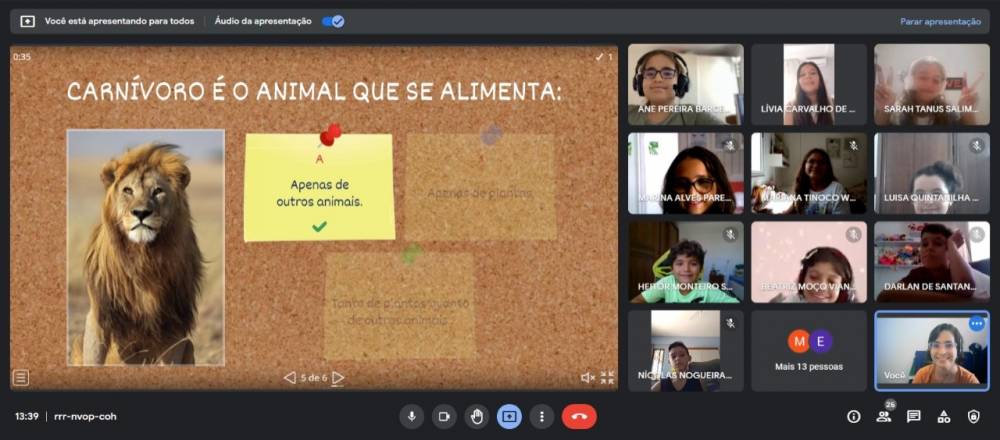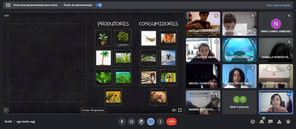 O 5º ano fundamental do CENSA reviu os conceitos adquiridos em 2021, na disciplina de Ciências, participando de um jogo de múltipla escolha. A dinâmica aconteceu na aula virtual de terça-feira, 8 de fevereiro, com o desafio "Produtor ou consumidor?". O objetivo foi agrupar os seres vivos em local adequado, observando seu papel na cadeia alimentar. "Além de relembrar o conteúdo, a atividade incluiu o estudo sobre a água, relacionando a importância desse recurso para a alimentação e manutenção dos seres vivos",explicou a coordenadora Criscilamara Neves.
