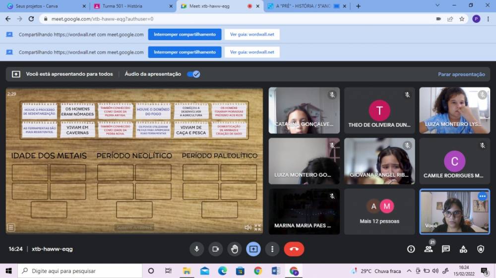 O 5° ano fundamental do CENSA dedicou a primeira semana de aulas de História para revisar os períodos paleolítico e neolítico. Após registros no caderno e vídeos, os alunos partiram para uma aprendizagem através da gamificação, utilizando a plataforma Wordwall. Além de consolidar conceitos como nômades e sedentários, a atividade pontuou a transição de uma humanidade que era caçadora e coletora para a presença da agricultura na formação das primeiras aldeias.