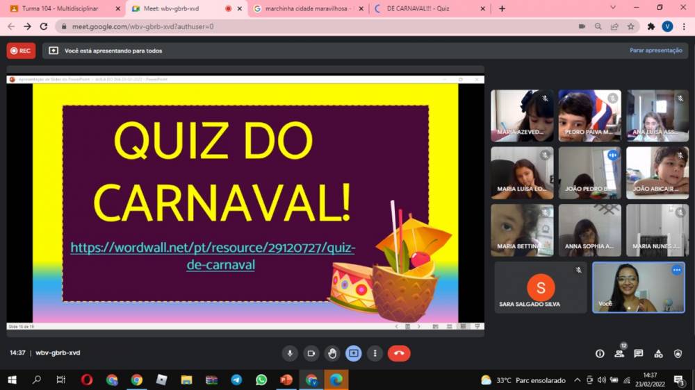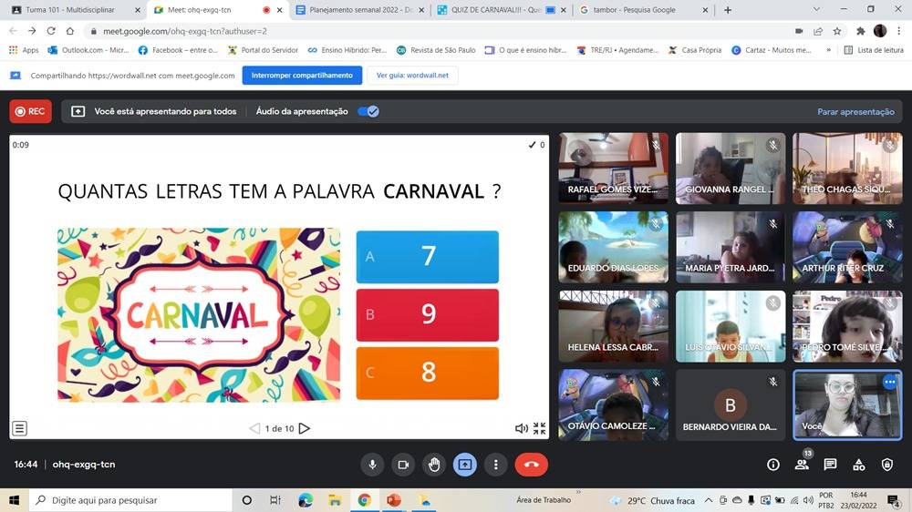 O Carnaval foi destaque nas aulas da última semana de fevereiro, do 1º ano fundamental do CENSA. Após conhecerem a história dessa festa tão comemorada pelos brasileiros, os alunos realizaram de uma série de atividades sobre o tema. Na disciplina de matemática, fizeram a relação numeral/quantidade, utilizando confetes; na de Língua Portuguesa, realizaram uma ortografia carnavalesca, escrevendo espontaneamente palavras usando letras/grafemas, e se divertiram com as marchinhas, na aula de música, e num quiz envolvendo todas as disciplinas. Fechando a semana, o Esquenta Censa Virtual, para entrar de vez no clima carnavalesco! "As crianças se envolveram de forma alegre e espontânea e as atividades tornaram-se mais significativas", disse a professora Patrícia Soares.